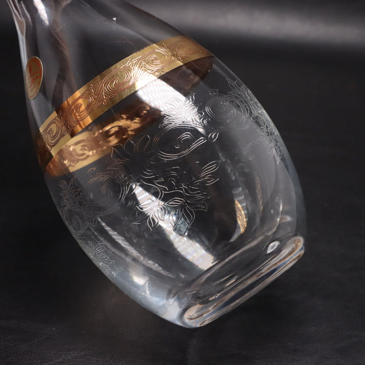 Interglass Crystal Decanter 13 1/2" Gold Foil Florence Italian Glass Vintage