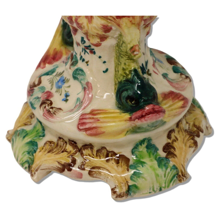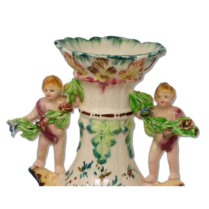 Italian Majolica 14" Amphora Vase Putti Handles Hand Painted Porcelain Late 19th