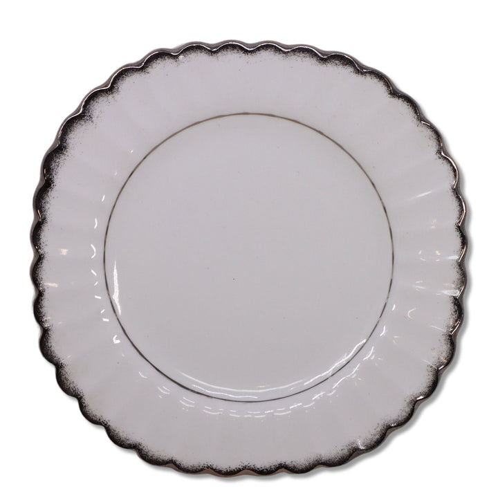 J & G Meakin Cheltenham Silver Bread Plate 6 1/8" Classic White Platinum 1960's