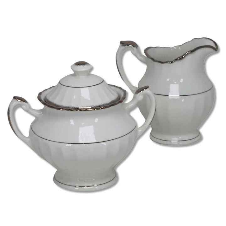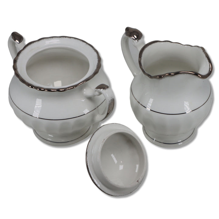J & G Meakin Classic White Cheltenham Silver Creamer Sugar Bowl Flutted 1960's