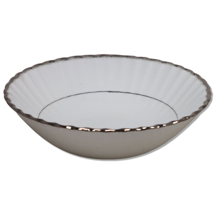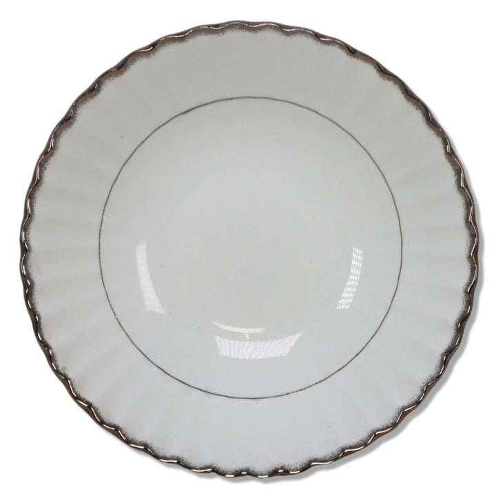 J & G Meakin Classic White Cheltenham Silver Round Vegetable Bowl 8 1/2" 1960's