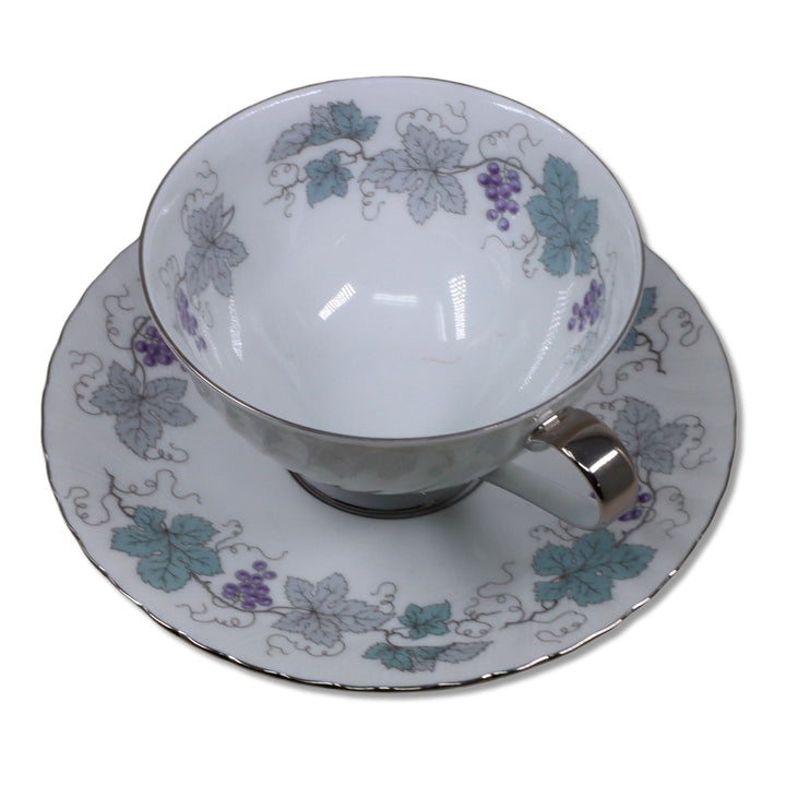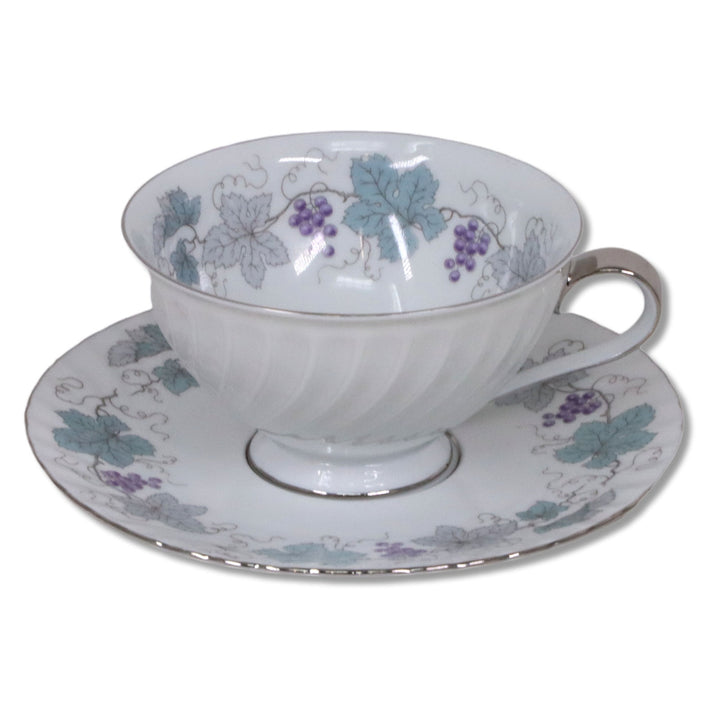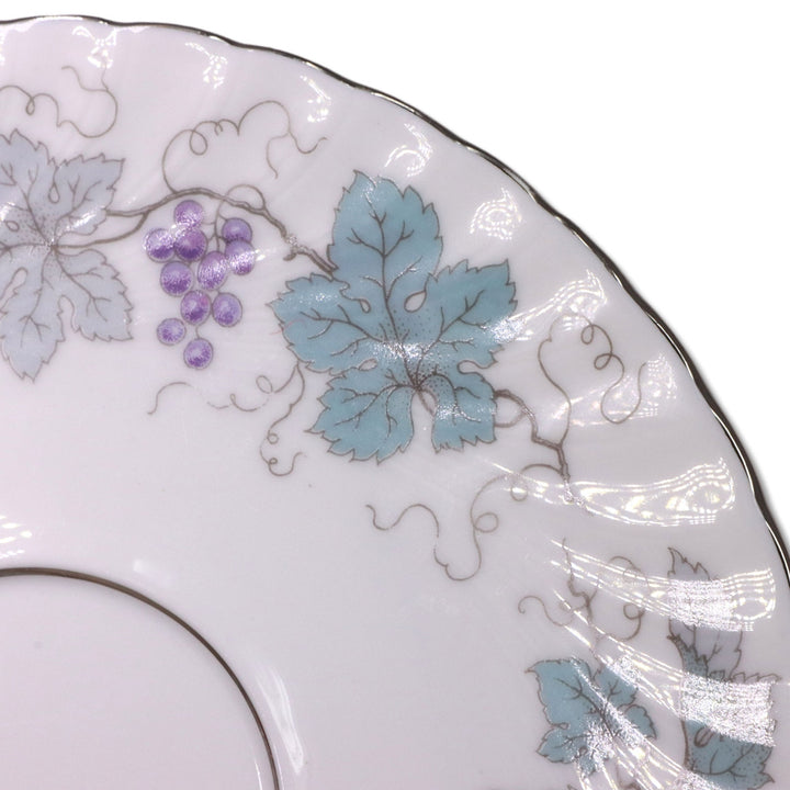 Description: Grapes & leaves, Swirl fluted rim, platinum trim