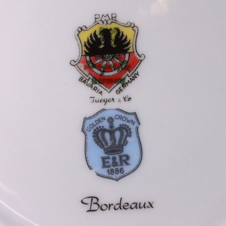 Jaeger Co Golden Crown ER Bordeaux ER Tea Cup Saucer Swirl Fluted Plat 1960's