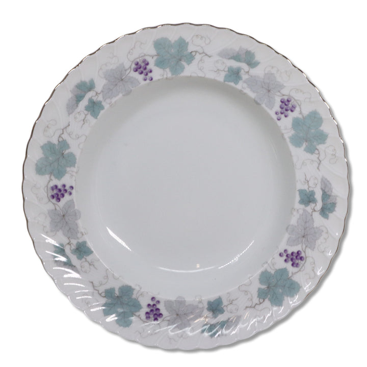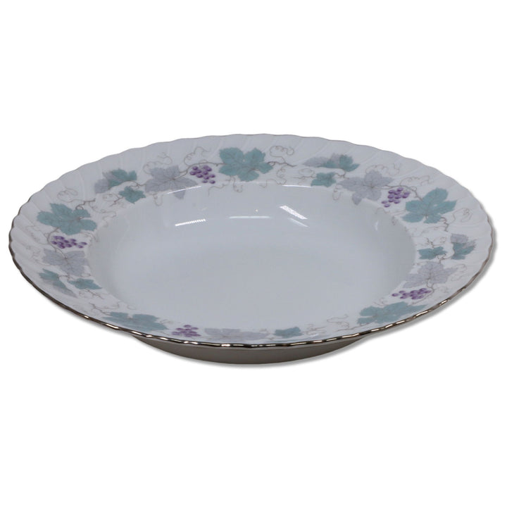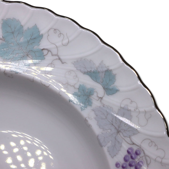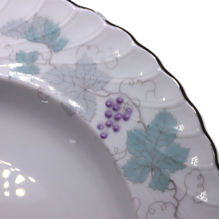 Description: Grapes & leaves, Swirl fluted rim, platinum trim