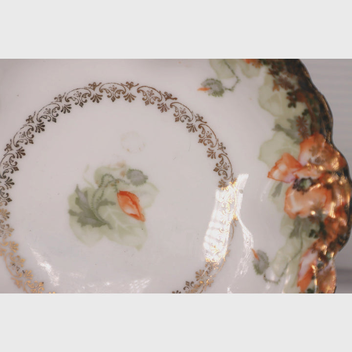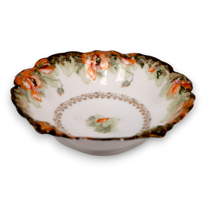 Jaeger JAE67 Malmaison, Orange Flowers, Filigree Band Fruit Berry Bowl 1800's