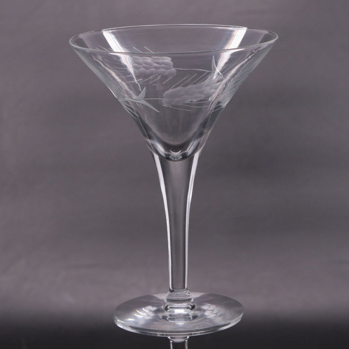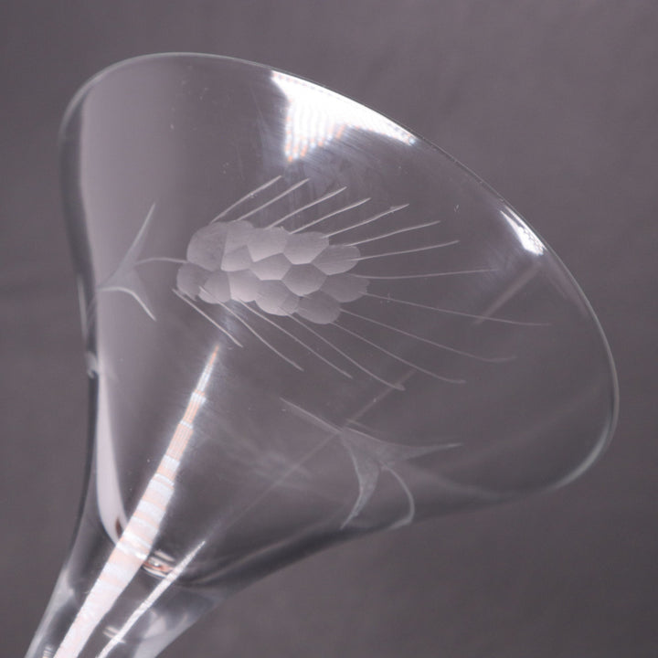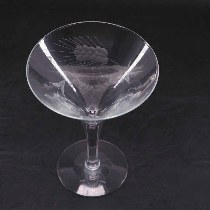 Javit Crystal Fine Wheat Etched 6" Martini Champagne Tall Sherbet Glass Vintage 1940's