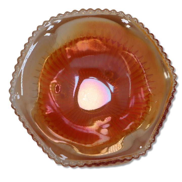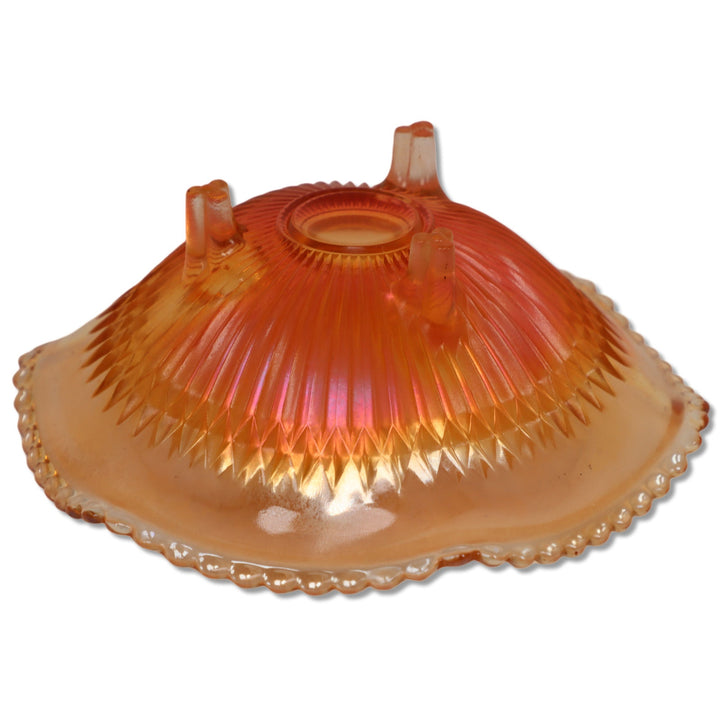 Jeannette Anniversary Iridescent Marigold Carnival Glass 3 Toed Candy Dish 1965