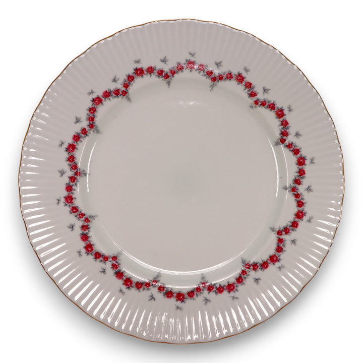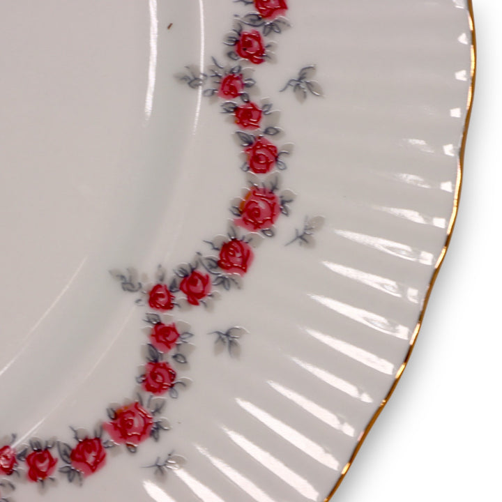 Description: Pink Roses, Gray Leaves, Ribbed Rim