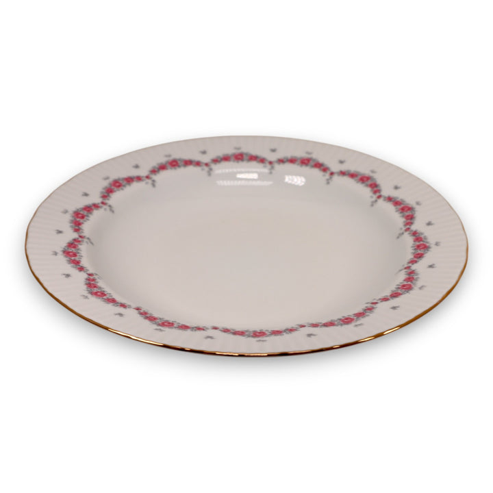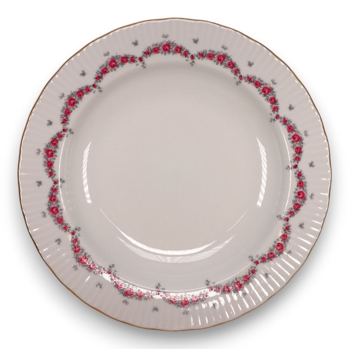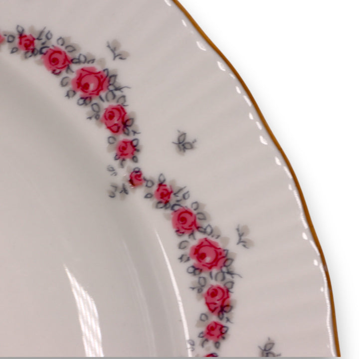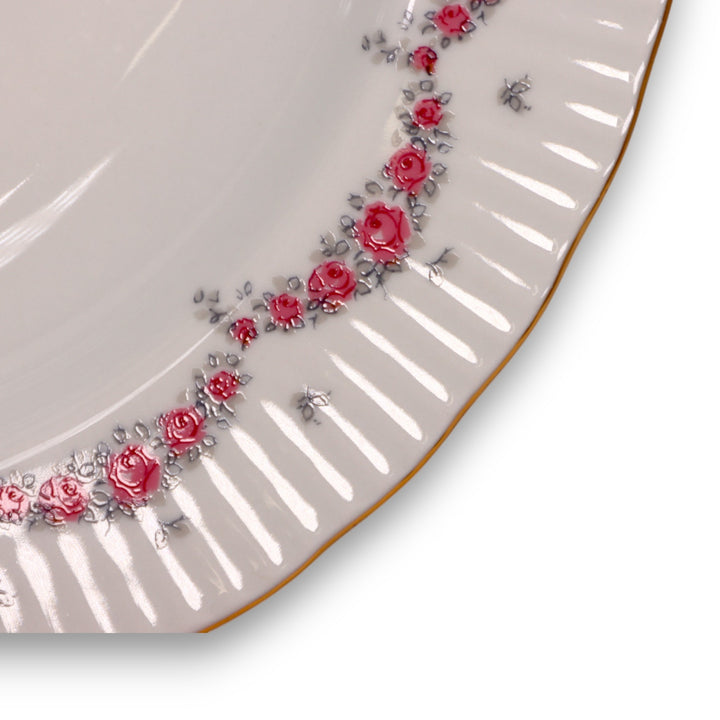 Description: Pink Roses, Gray Leaves, Ribbed Rim