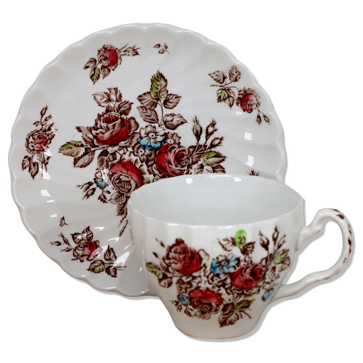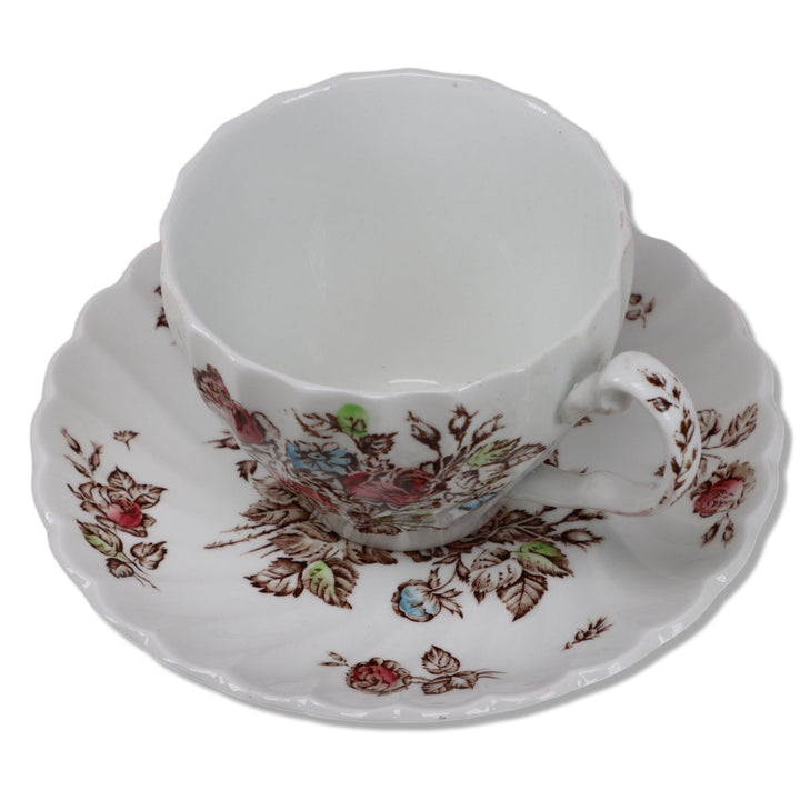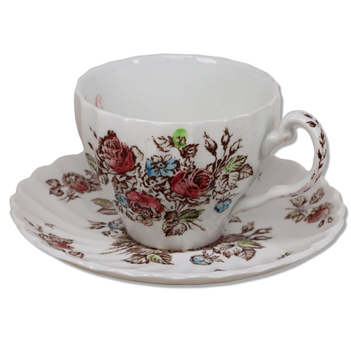 Johnson Bros Devon Sprays Tea Cup Saucer Set Brown Multi Color Bone China