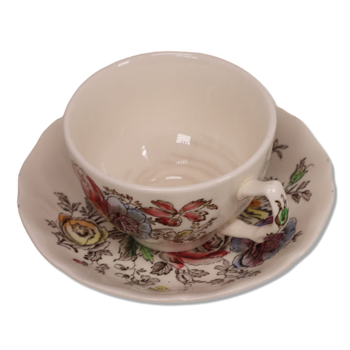 Johnson Bros Sheraton Tea Cup Saucer Set Roses on Cream Vintage 1940's