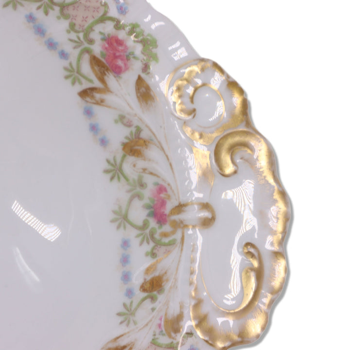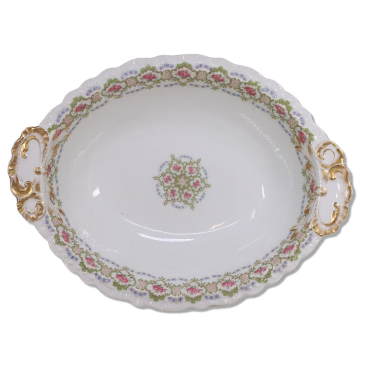 JPL Limoges Jean Pouyat Oval Vegetable Serving Dish Roses Gold Trim Antique 1890