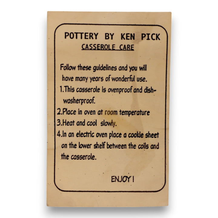 Ken Pick casserole Tureen Cermaic Glazed Earthware Covered Bowl Vintage