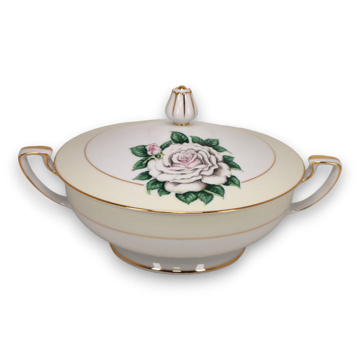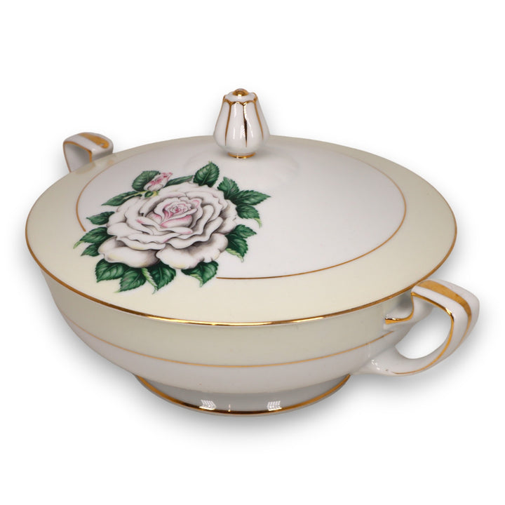 Kings Court White Rose Covered Vegetable Dish Bowl Vintage 1960's