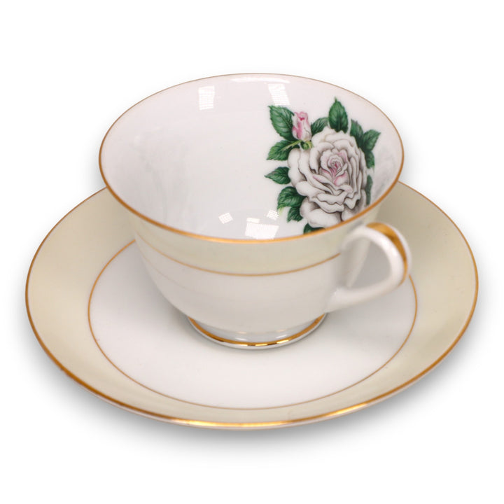 Kings Court White Rose Tea Cup Saucer Set Vintage 1960's