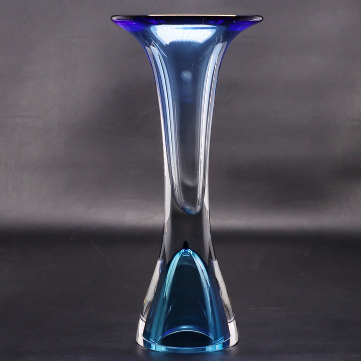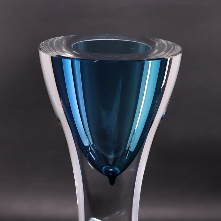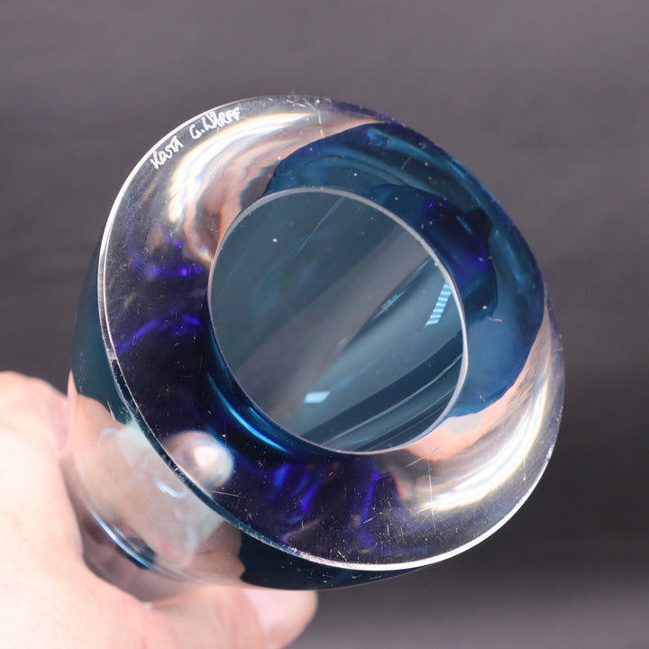 Kosta Boda Art Glass 12" Blue Trumpet Vase Signed by Göran Wärff Vintage