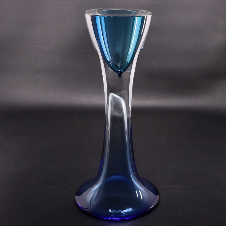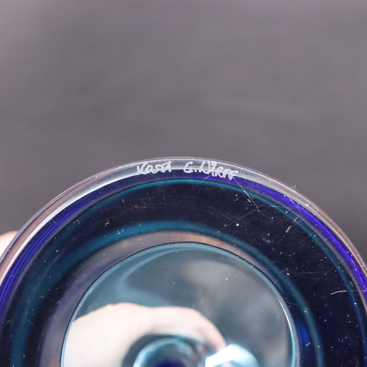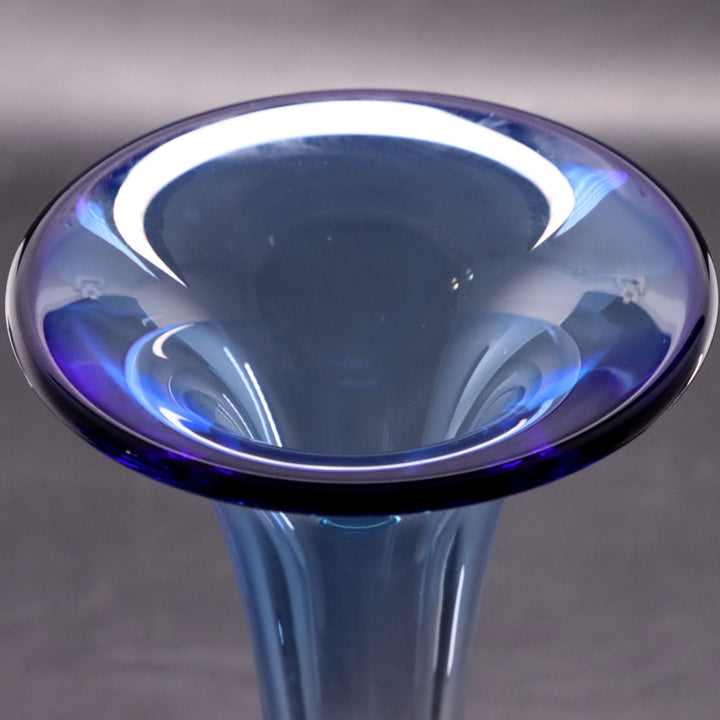 Kosta Boda Art Glass 12" Blue Trumpet Vase Signed by Göran Wärff Vintage