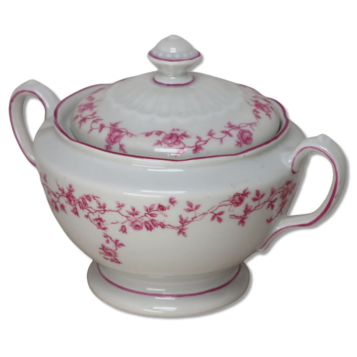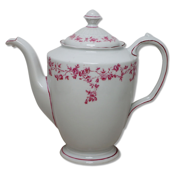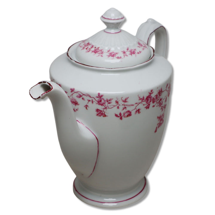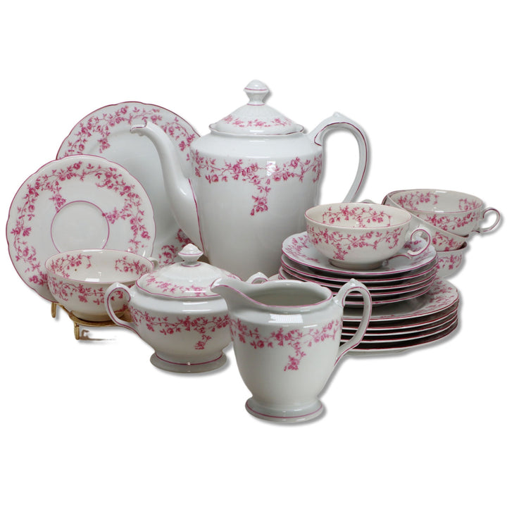 21pc KPM Teapot 6 Tea Cup Dessert Plate Creamer Sugar Pink AW Kister Poland 1920's