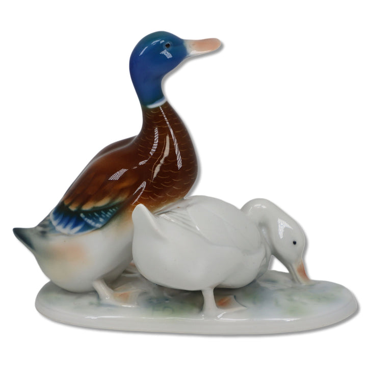 Kunstporzellan Ilmenau Mallard Ducks Porcelain Figurine Germany 1970's