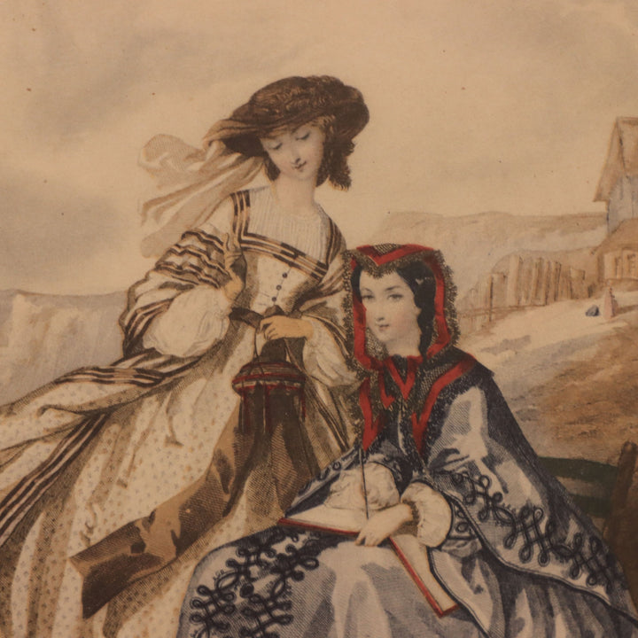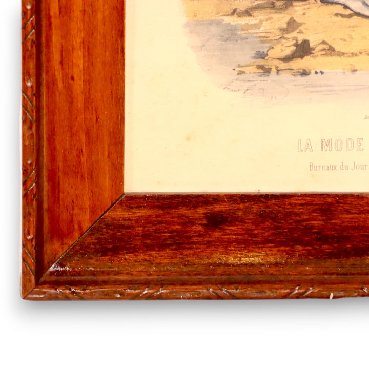 La Mode Illustre Journal de la Famile French Fashion Print Framed Antique
