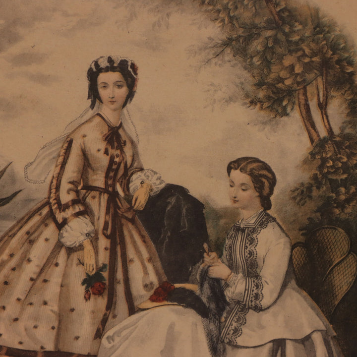 La Mode Illustre Journal de la Famile French Ladies Fashion Print Framed Antique