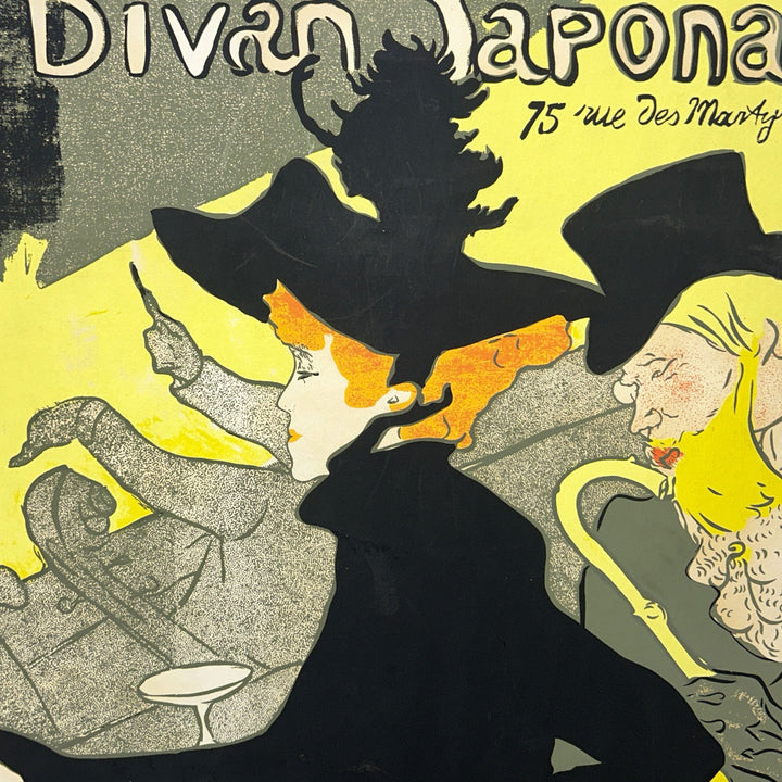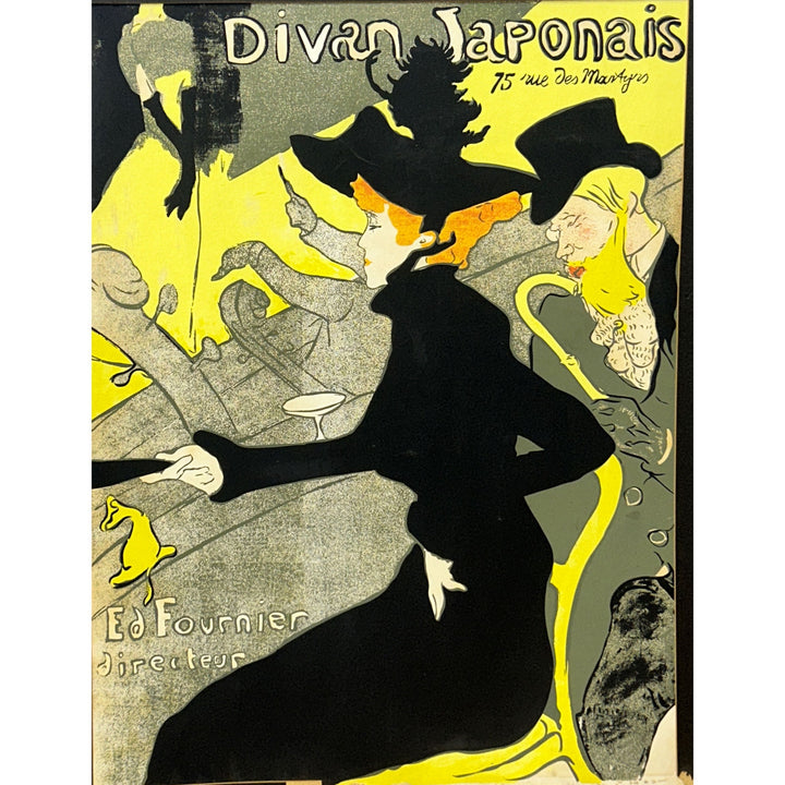 Mid century silk-screened serigraph titled Divan Japonais. Original was by post-Impressionist painter, lithographer, and illustrator Henri de Toulouse-Lautrec (French, Albi 1864–1901 Saint-André-du-Bois).