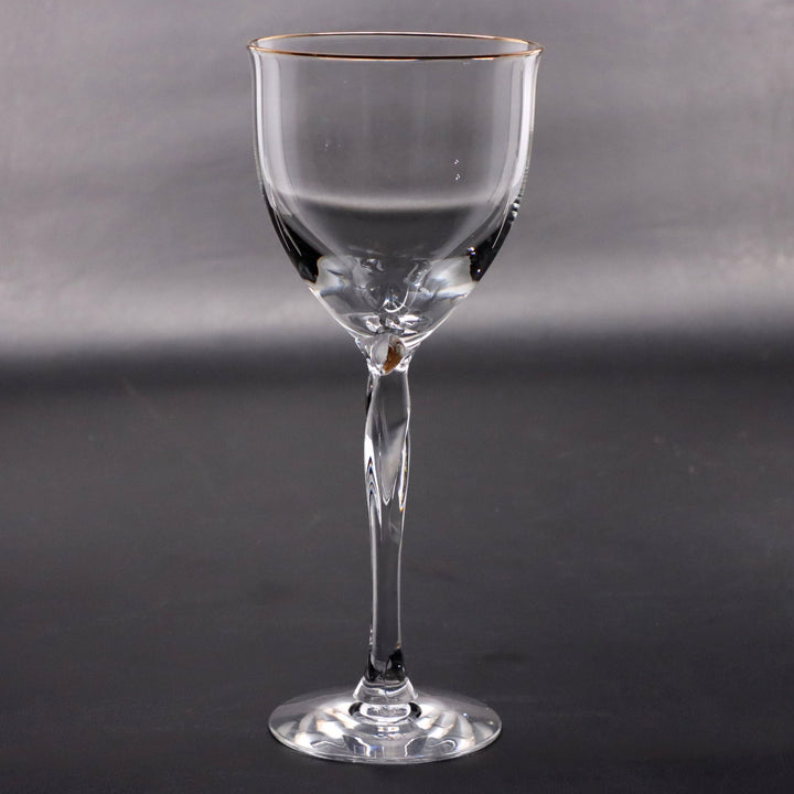 Lenox Crystal Rhythm Gold Water Goblet 8 1/2" Optic Gold Rimmed USA Glass 1990's