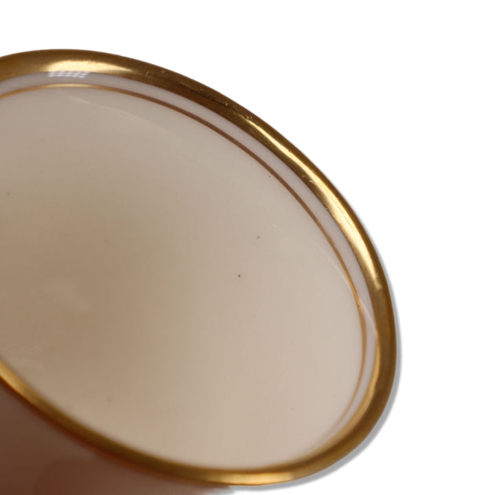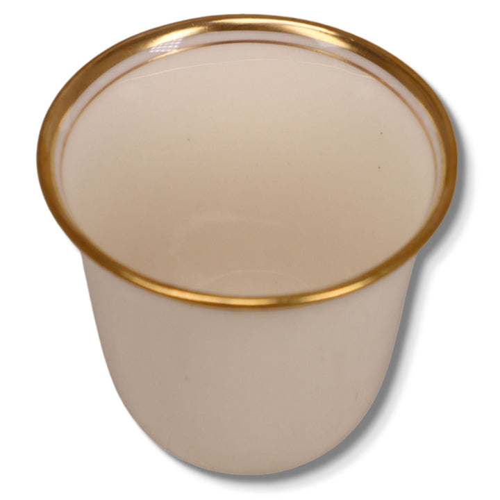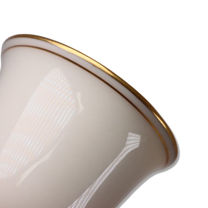 Bell shaped cream porcelain with double gold band on inside and outside bell rim.