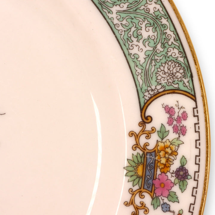 Green Scrolls & Flower On Rim And Center, Gold Trim
