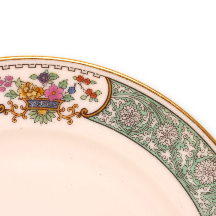 Green Scrolls & Flower On Rim And Center, Gold Trim
