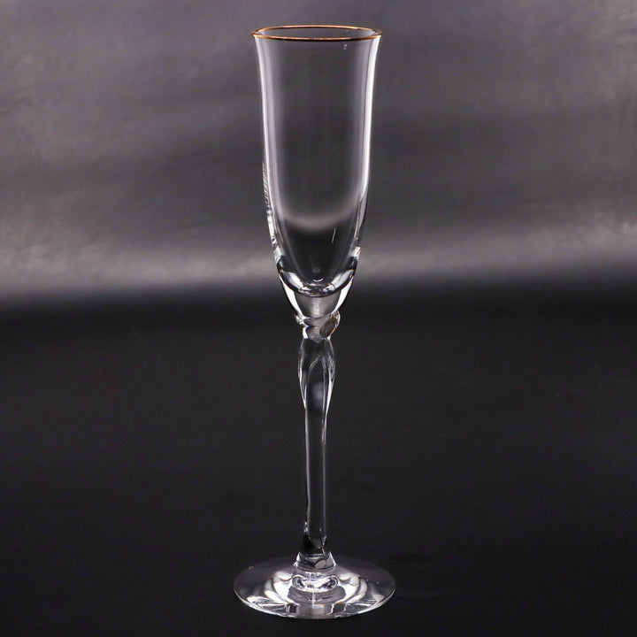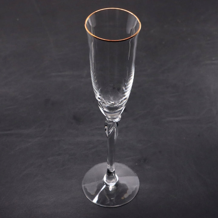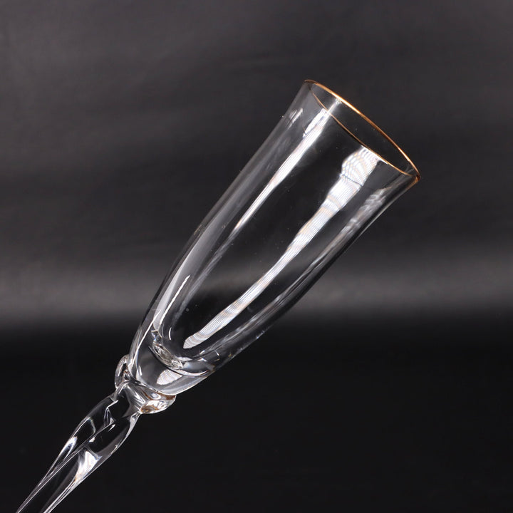 Lenox Rhythm Gold Champagne Flute 9 1/2" Optic Gold Rimmed USA Glass 1990's