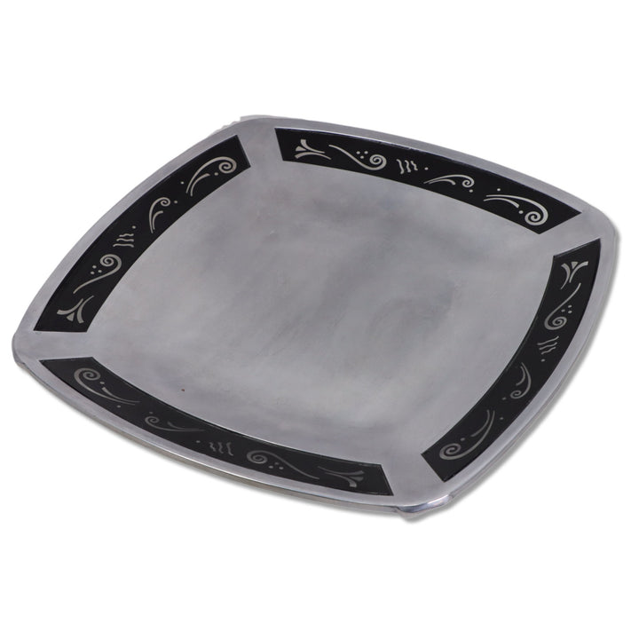 Lenox Spyro 14" Black Glass and Alloy Serveware Serving Platter Tray