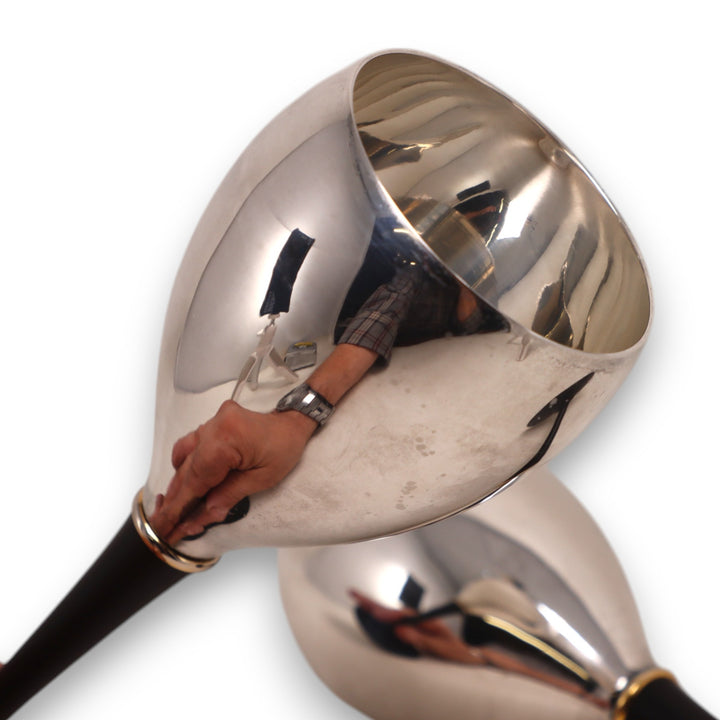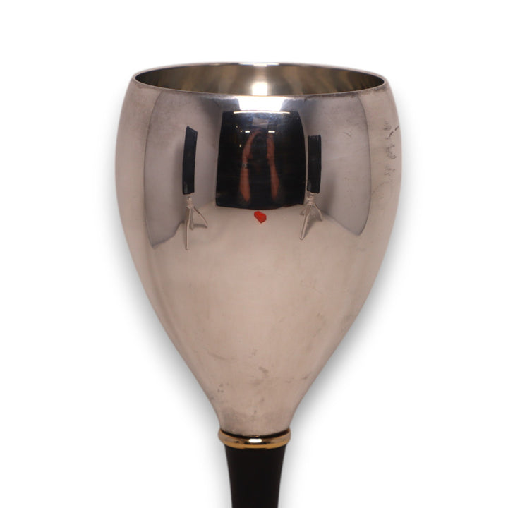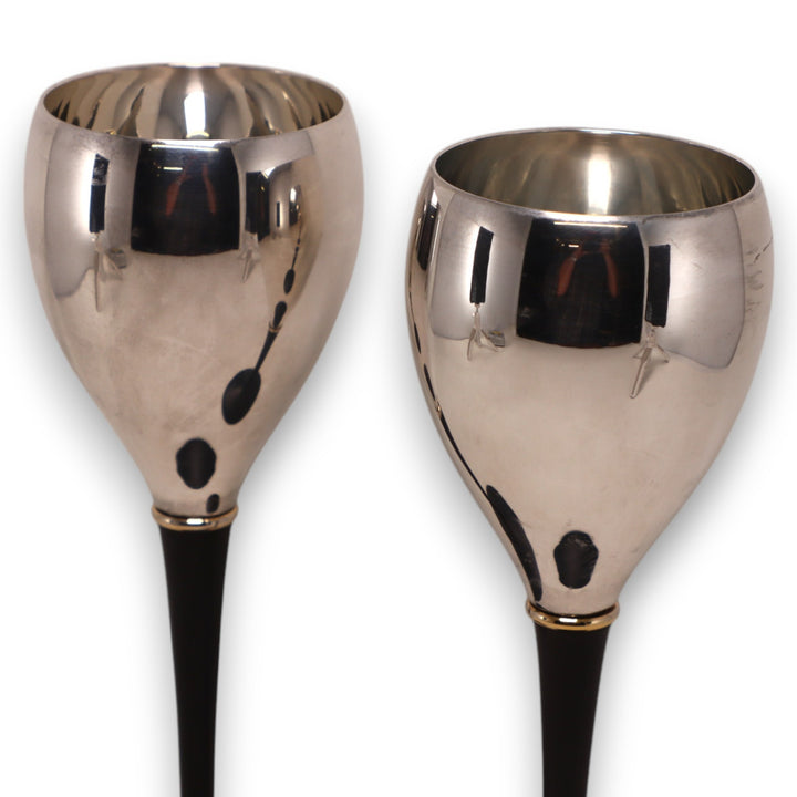 Lexox 2pc Kirk Stieff Silver Plated Gold Ring Black Stem Wine Goblet 8" Vintage