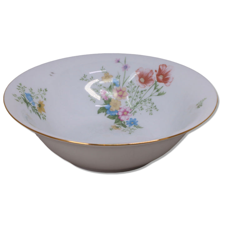 Liling Blooming Round Vegetable Bowl 9 1/8" Floral Gold Trim Japan Vintage