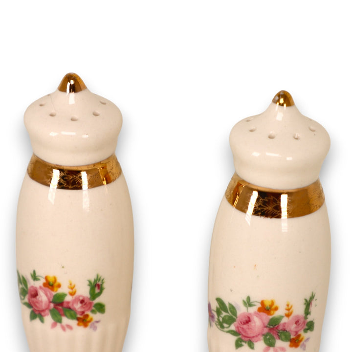 These salt and pepper shakers were made by the American Limoges China Company. American Limoges operated from East Palestine, Ohio from 1900 to 1955. The pattern of these salt and pepper shakers are New Princess, pattern number 4LC360. It was from thier Candlelight dinnerware collections.