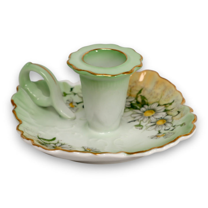 Limoges China Daisy Chamberstick Candle Holder Gold Trim Antique c.1890