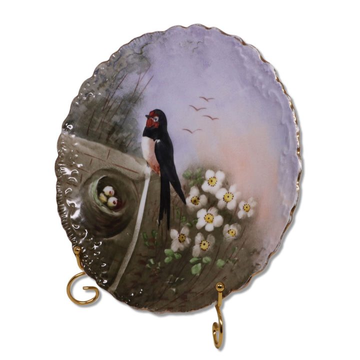 Limoges France Hand Painted Bird Embossed Plate 10.25" Vintage