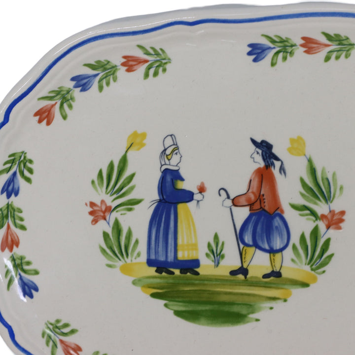 The pattern features a hand painted Breton peasant couple surrounded by stylized Quimper style florals.