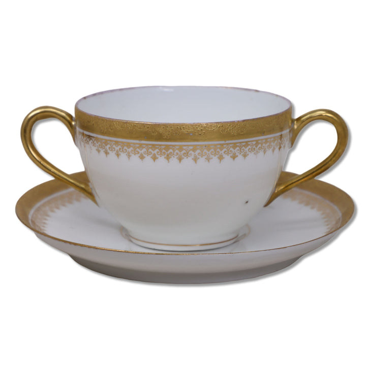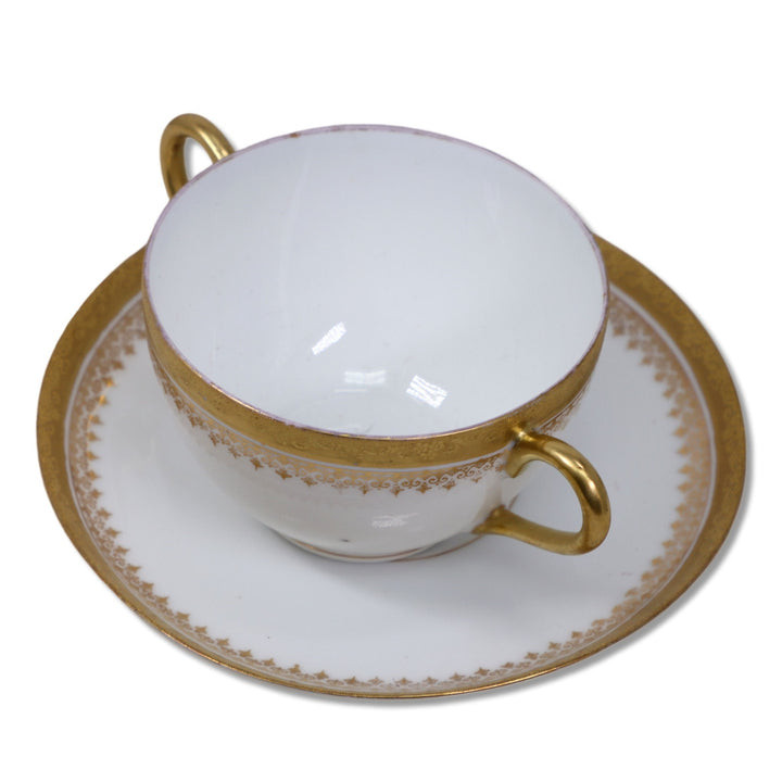 L.S. & S. S&S L Limoges Gold Encrusted Bullion Cream Soup Bowl Antique C.1890's