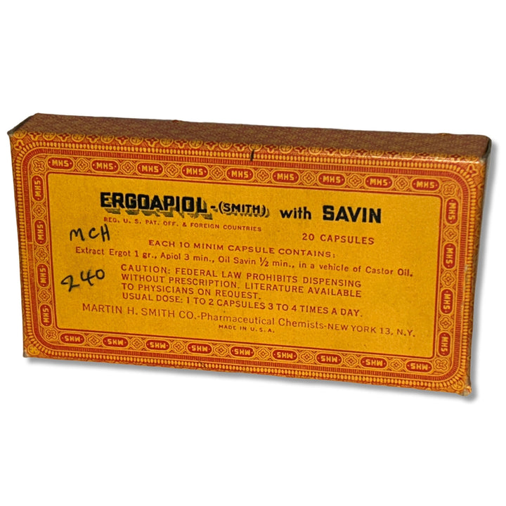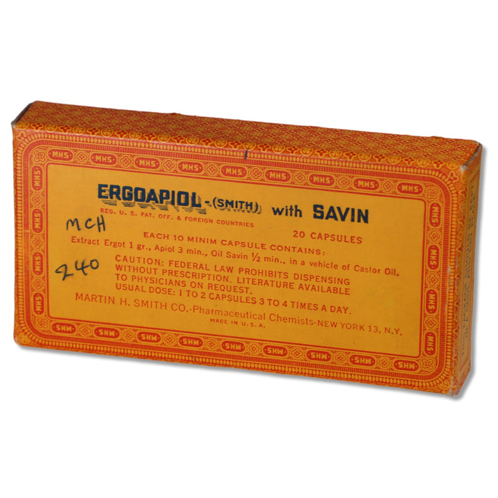 Martin H Smith Ergoapiol Savin Quack Medicine for Menstrual Disorders Box 1920's