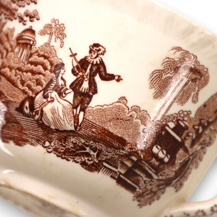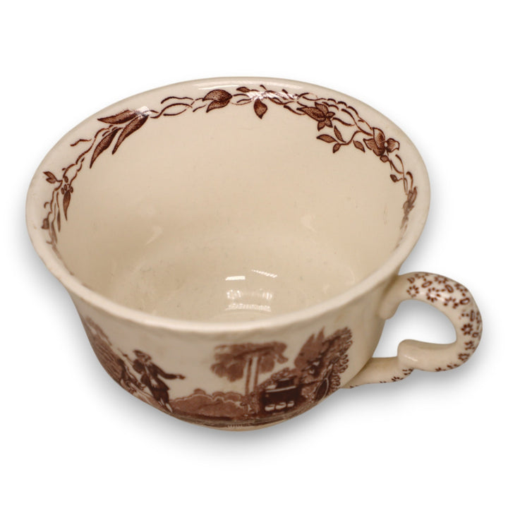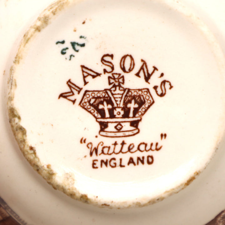 Mason's Watteau Brown Floral People Landscape Flat Tea Cup England Vintage