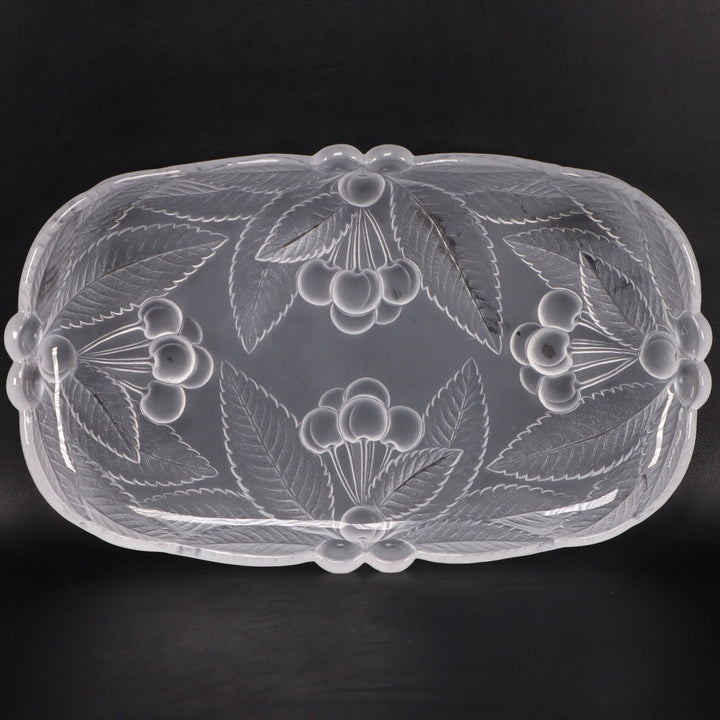 Mikasa Bountiful Cherries Satin Frosted Glass Platter 12x7¾” Vintage 1984