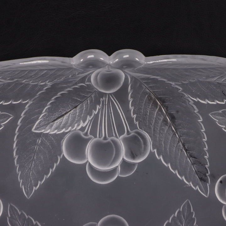This elegant frosted glass platter from Mikasa features the “Bountiful Cherries” pattern — a beautiful embossed and satin-finished design with raised cherry clusters and serrated leaves. The smooth underside contrasts with the frosted top, giving it a refined, dimensional look. Perfect for fruit, pastries, or display, this platter captures Mikasa’s signature balance of artistry and utility from the mid-1980s.