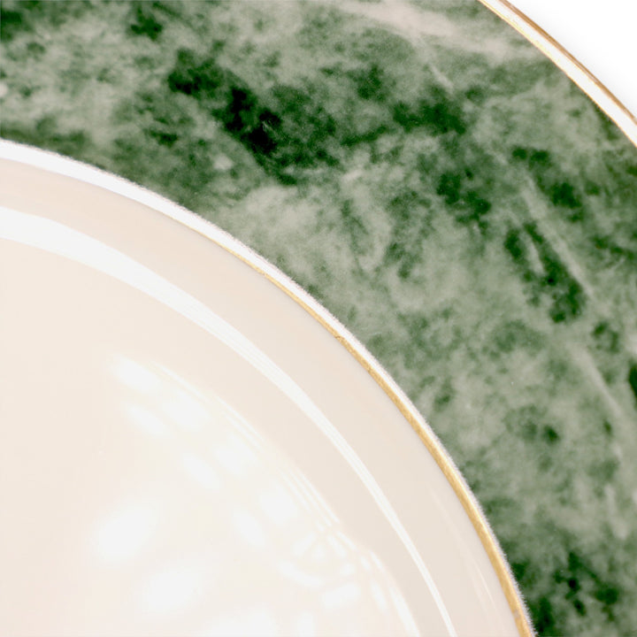 Design Style: Modern Luxe with marble-effect rim and gold trim
