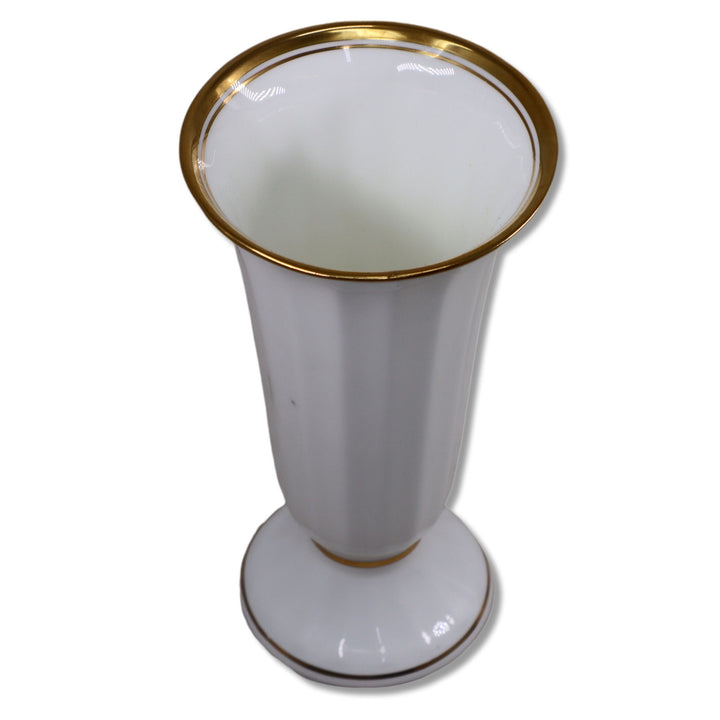 Mikasa Trumpet Vase Gold Rimmed White Bone China 6.25" Japan
