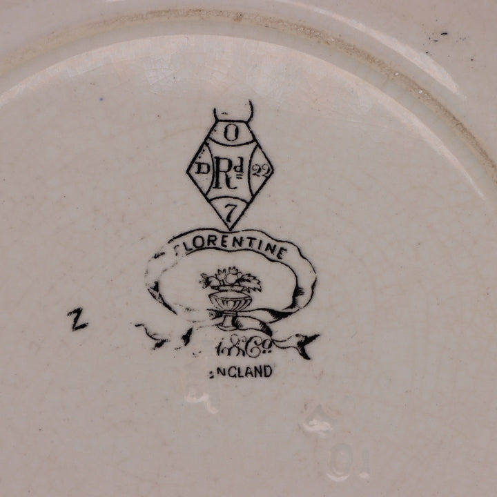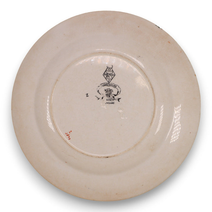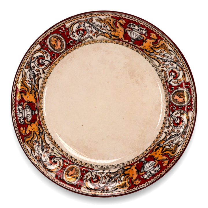 Minton 2pc Florentine Red C495 Luncheon Plate 9" England Griffins Antique 1862