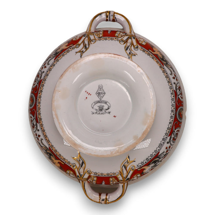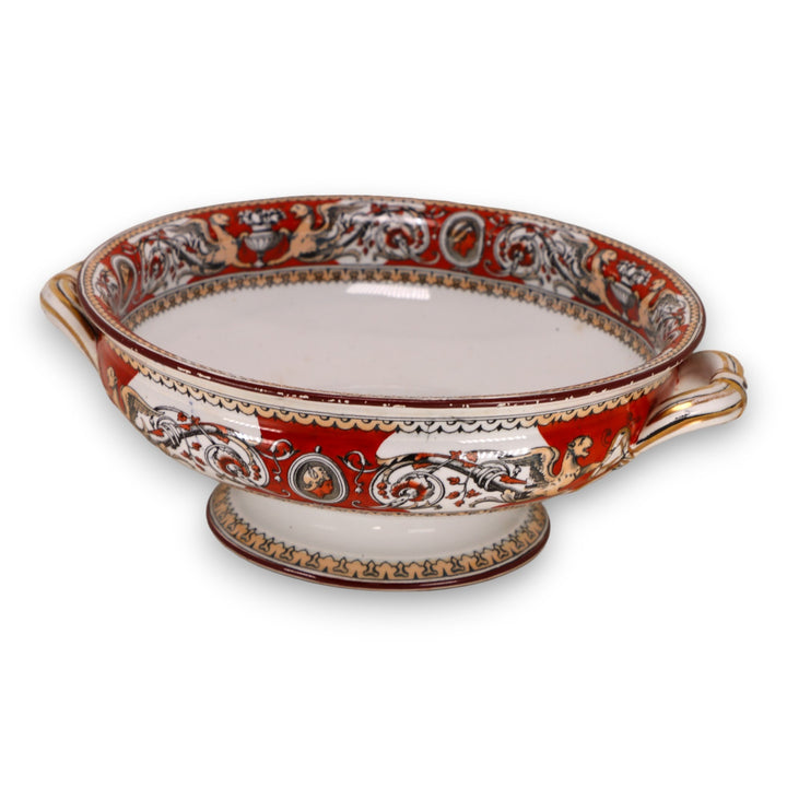 Minton Florentine Red C495 Compote Bowl Serving Dish England Antique 1862