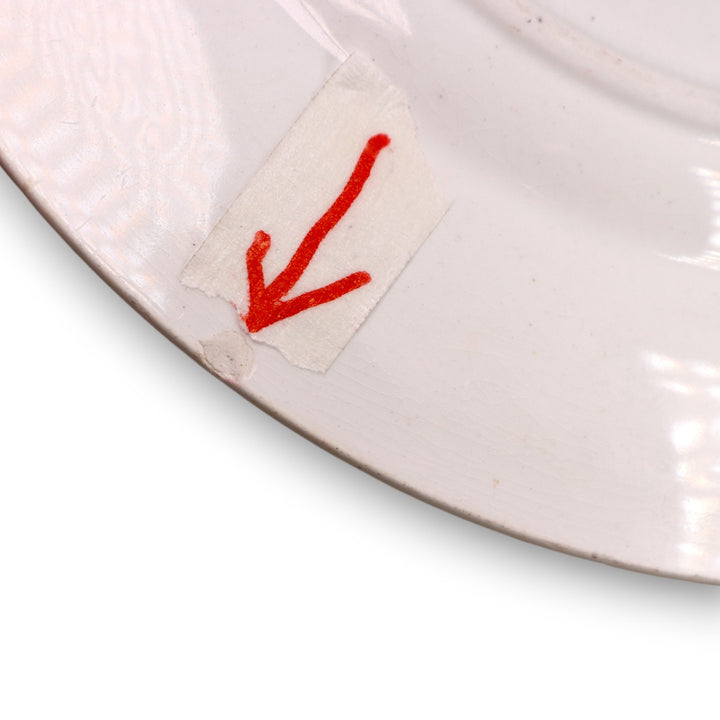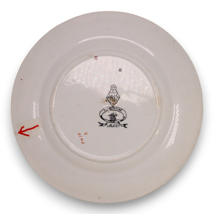 Very good condition. Almost excellent but has a small rim nick on underside and a bit of maroon rim wear with crazing. Details shown in pics.