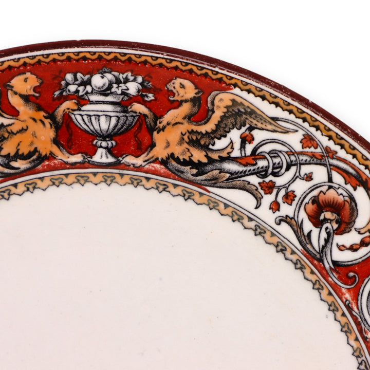 Minton Florentine Red C495 Salad Plate 8" England Griffins Mercury Scrolls Antique 1862