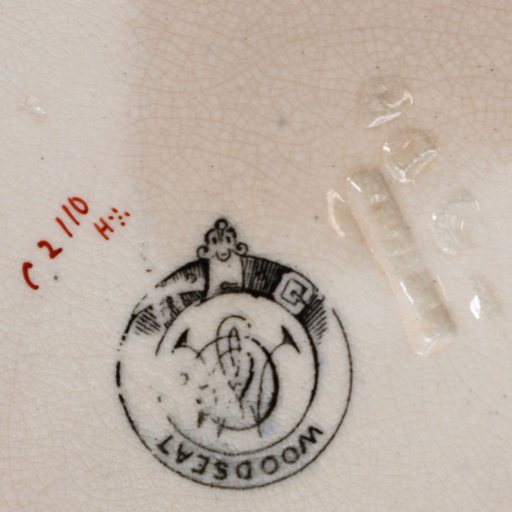Most pieces hand marked C2110 H and stamped "MINTONS". Black Woodseat mark on many pieces. Month and year symbols are on all, but my eyes just aren't good enough to dial down.